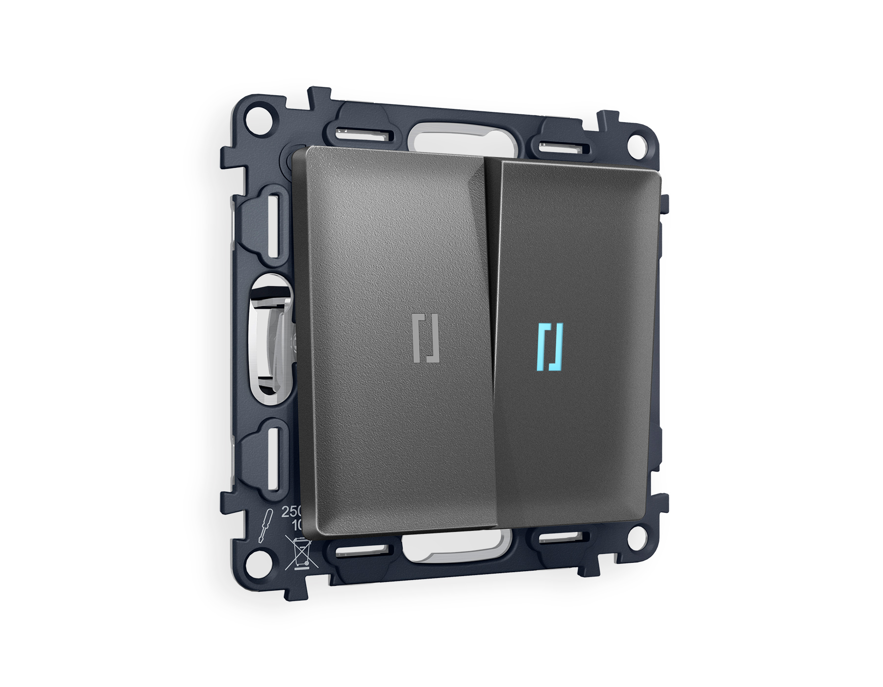 | Альтернативное название | Комплект механизма 2-клавишного выключателя с подсветкой 10000K ALFA MA654020 Антрацит серый QUANT |