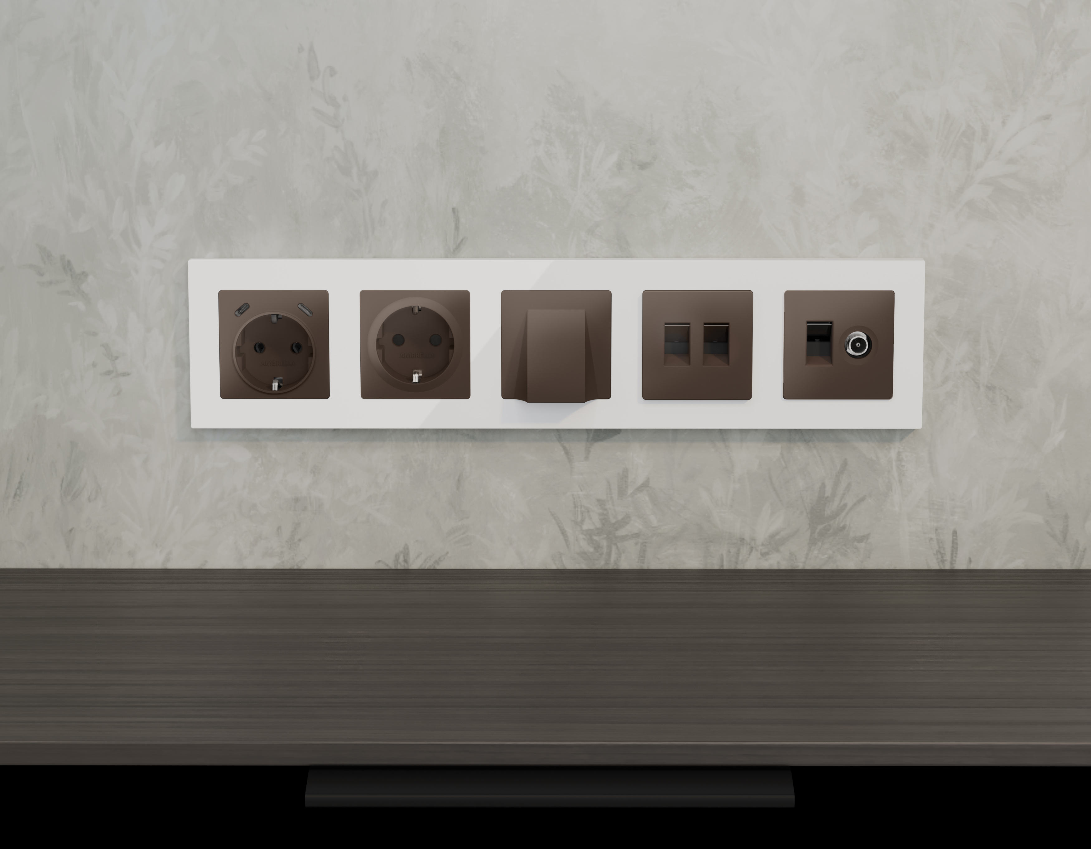 Комплект мех-ма компьютерной двойной розетки RJ-45 с автоматической защитной шторкой ALFA Темная бронза матовый QUANT (AP6421, VM189) (Ambrella Volt, MA642110)